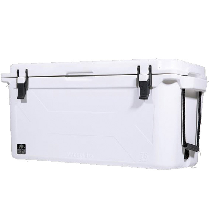 The drinks in your cooler will still be cold, with this American made 75-quart cooler from Bison. Its small enough for one person to carry and the perfect size for a multi-use all-around ice chest for hunting, fishing, tailgating or camping.
