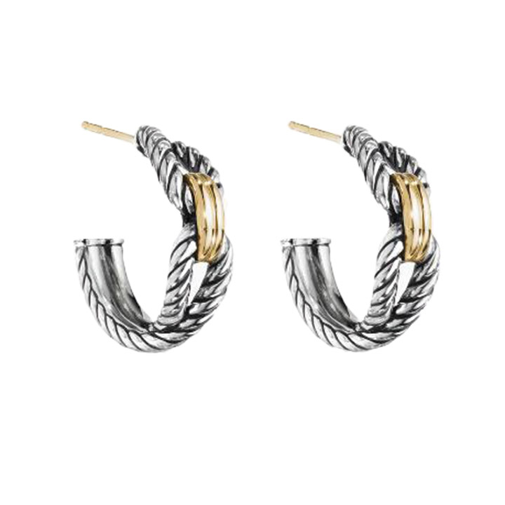 David Yurman's signature cable design is transformed into sculptural twists connected by a single loop. Crafted in sterling silver with 18-karat yellow gold.
