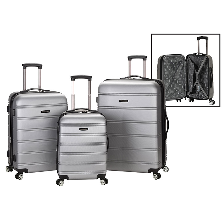 This 3-piece luggage set is extremely lightweight, it is durable, and protects the contents of your luggage. Eight multi directional spinner wheels rotate 360 degrees for easy maneuverability and it allows you to pack more while avoiding the excess Weighs surcharges imposed by most airlines. It features multi-directional spinner wheels for easy maneuverability, modern internal chrome telescoping handle, interior mesh, and zip elastic pockets. Dimensions: 20" x 13" x 9"; 24" x 15" x 10"; 28" x 17" x 12". Weighs 24 pounds.