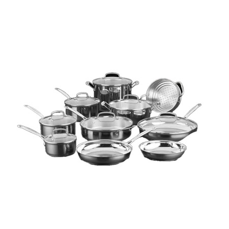 The perfect choice for serious cooks, entertainers or big families, this ultimate set includes everything a home chef needs. Cuisinart offers three saucepans, three skillets, a large sauté, the versatile 8-quart stockpot, and a steamer insert that fits the 2-quart and 3-quart saucepans. Each pan is induction-ready and suitable for any cooking surface. Each saucepan features convenient measurement markings for ease of use.
