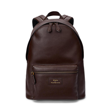 A streamlined silhouette realized in pebbled leather gives this backpack a modern look. Embossed at the front pocket with Polo Ralph Lauren's signature logo, it features a mesh-paneled back for comfort and a padded laptop sleeve at the interior. Measures 20"H x 7"D x 13.25" L.