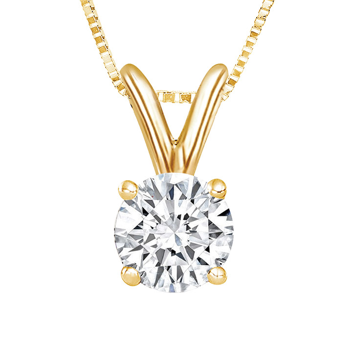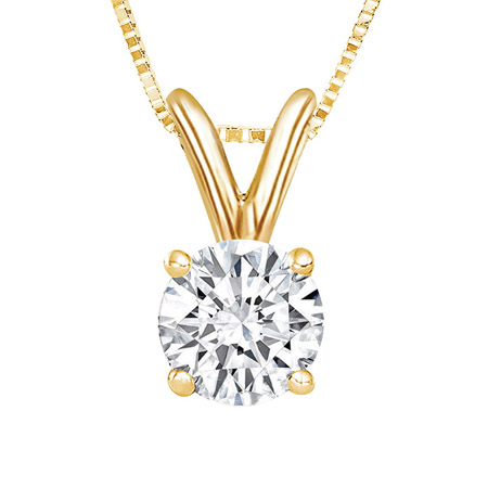 A classic, simple statement of quiet elegance is the message for this lab-grown diamond pendant on a 14K yellow-gold chain. The 0.55 carat stone has brilliant color and clarity that will have you wearing this piece on repeat.