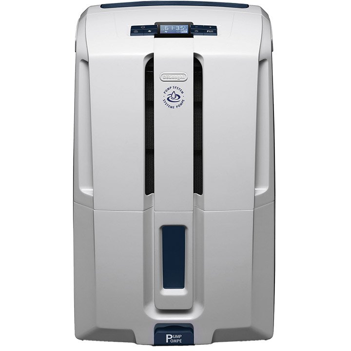 Ideal for rooms 500 to 700 sq ft in total area, the DeLonghi DDX50PE 50-pint dehumidifier with pump is the simple way to improve the air quality in your home without a complicated setup. You can simply select your ideal humidity level and breathe in the fresh air. Dimensions: 12.4" x 24.3" x 15.3". Weighs 39.9 pounds.
