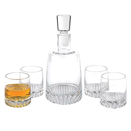 Designed to enhance the pleasure of entertaining at home, this luxury Badash Park Avenue whiskey set is the perfect gift at any time of the year. This crystal set comes with decanter and four 12oz rocks glasses for a complete set.