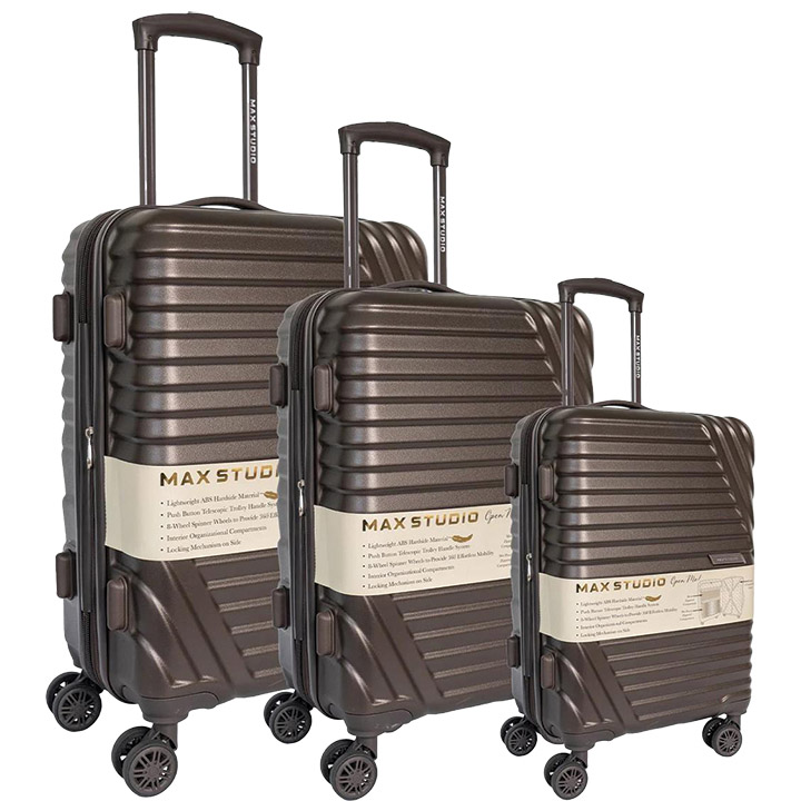 This luxurious set includes three meticulously crafted suitcases, 32", 29", and 21". Each is made of high-quality ABS material making them lightweight yet durable. The advanced eight-wheel spinner system provides smooth, 360-degree mobility and the telescoping push-button handles adjust to your ideal height.