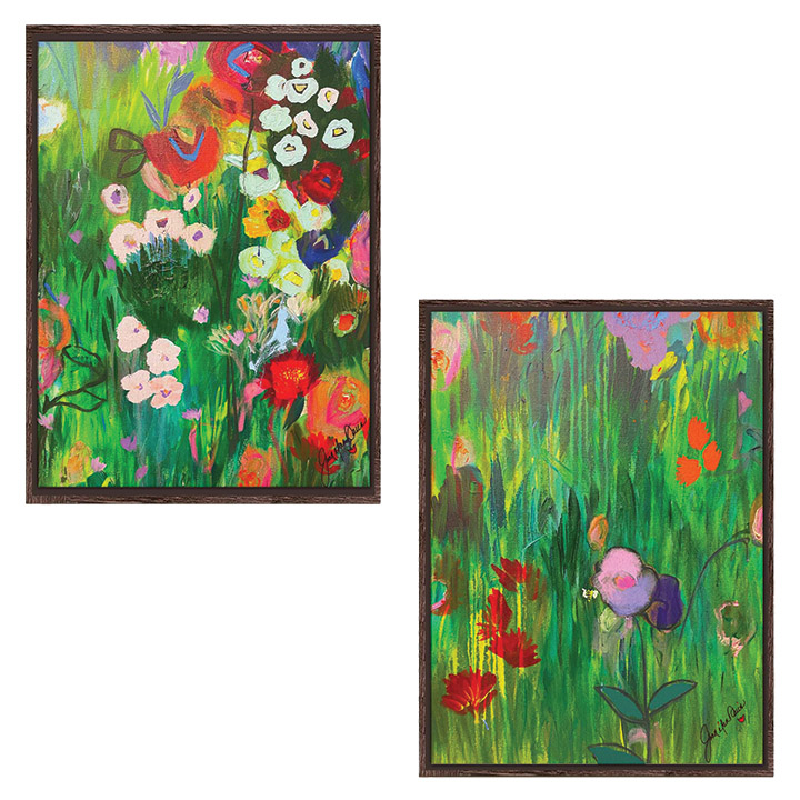 Discover the bold beauty of "Garden Floral I and II" by JD Studio. These abstract paintings capture the essence of a vibrant garden using a simplified style and bright colors. This vivid artwork brings a touch of nature to any space. The gallery wrapped canvas is enhanced with a float frame adding extra depth and dimensions. Dimensions: 18" x 24" each.
