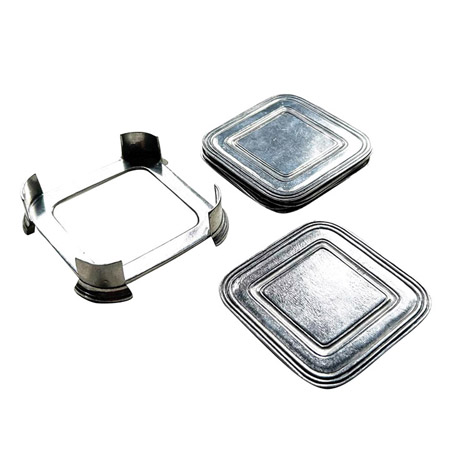 Transform your gatherings into moments of sheer elegance with Salisbury’s set of six Calvert pewter drink coasters. Each meticulously crafted piece embodies the timeless allure of pewter, marrying functionality with sophistication. Measures 4” x 4”.