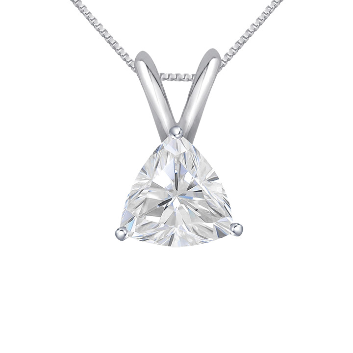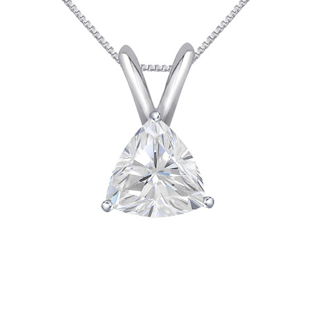 The trilliant shape of this lab grown diamond pendant necklace is truly eye-catching. It features a 1.30 carat stone on a 14K white gold chain for a breathtaking addition to your next occasion look.