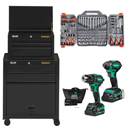 This Professional Workshop Package features a compact driver drill, compact impact driver drill, 26" 5-drawer tool chest/cabinet, and a 150-piece assortment of Crescent hand tools for most industrial, mechanical, and consumer applications.