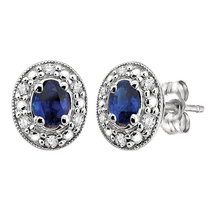 A deep sea of blue encircled by magical ice, the pendant on this striking necklace features a passionately blue 4x3mm oval sapphire surrounded by a halo of round brilliant-cut diamonds set in 14K white gold. The pendant is suspended from an 18" cable chain.