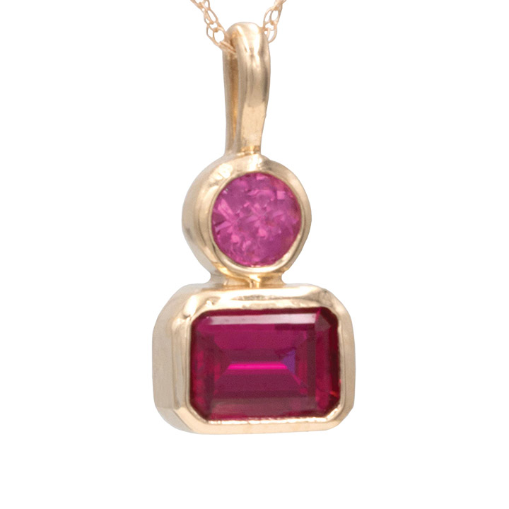 The “Color Strong” necklace from Antwerp Diamonds will add a pop of color to any woman’s classic jewelry collection. It features a pendant with a round 3mm, 0.30 carat genuine round pink bezel-set tourmaline sitting above an octagon-shaped 7mm x 5mm, 1.24 carat red tourmaline and set in 14K yellow gold.