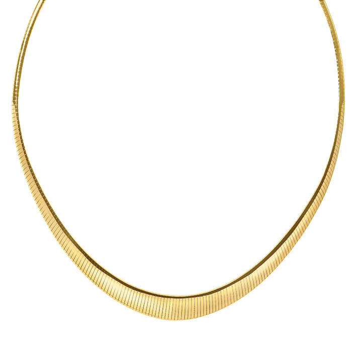 Inspired by luxury vintage necklaces, this elegant, graduated Omega collar can be worn alone as a luxe, clean piece but also adds a bold, finishing touch to any necklace stack. Made in 14K gold vermeil and measuring 4-6mm wide, you can wear this classic styling piece as a constant reminder of your inner wisdom and power.