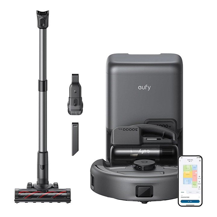 The Eufy Robot Vacuum 3-in-1 E20 seamlessly transforms from a powerful robot vacuum to a versatile stick vacuum or a portable handheld vacuum, making it the ultimate cleaning solution for your home. Equipped with high-performance filters, a powerful 30,000 Pa suction for handheld and stick modes, an auto-empty station, faster charging, and millimeter-level obstacle avoidance, the E20 is designed to serve you and your family anytime, with unmatched convenience and efficiency.