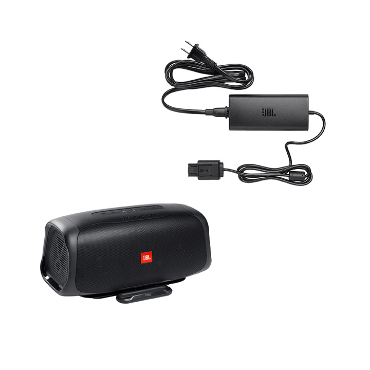 BassPro Go In-Vehicle Powered Subwoofer & Portable Bluetooth Speaker. Adjustable audio settings maximize bass performance. IPX5 Water resistant. Stream via Bluetooth. JBL Connect - connect up to 3 devices for social mode music sharing. Up to 8 hours of playback. Includes: Vehicle mounting bracket. Wiring harness. BassPro Go Home Power Adapter. Provides an AC power supply for BassPro Go so it is always charged. Seamless integration with 8ft cable length. Input power: 100-240V AC 50/60Hz. Output power: 19V DC 3.42A.