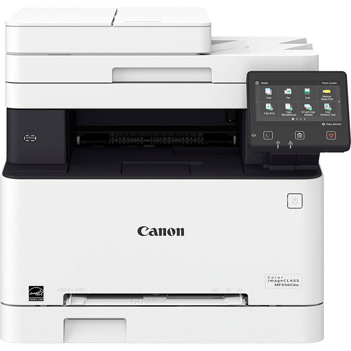 Designed for small and medium-size businesses the imageCLASS MF656Cdw model balances speedy performance and minimal maintenance. The MF656Cdw is easy to set up and offers media versatility to print on a variety of media types and sizes including envelopes banners and more. The customizable 5" color touchscreen delivers an intuitive user experience. Produce crisp colorful documents with fast print speeds of up to 22 pages per minute1 using high quality Canon Genuine Toner 067 / 067 H. Use Poster Artist Online to create professional-posters banners and signage. The MF656Cdw offers a plain paper capacity of up to 250 sheets 1-sheet multipurpose tray and 50-sheet automatic document feeder which scans double-sided documents in one pass. Easily connect and print through high-speed USB Ethernet or wirelessly from computers or mobile devices. Print using a variety of mobile apps including the Canon PRINT Business app2 using your compatible mobile device. The MF656Cdw comes with a 3-year limited warranty3 and is backed by Canon's Service and Support network.