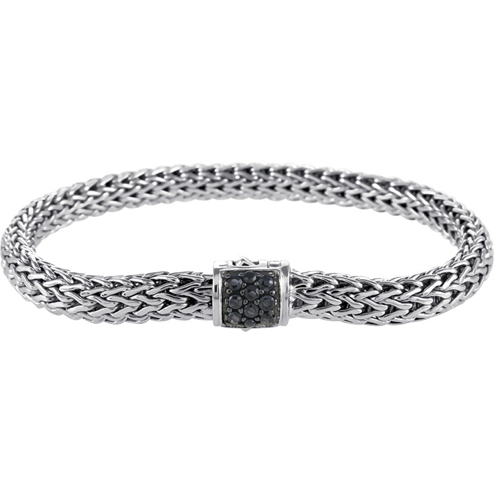 Woven by hand in reclaimed sterling silver, John Hardy's heritage Icon Bracelet features a reversible clasp with black sapphires.