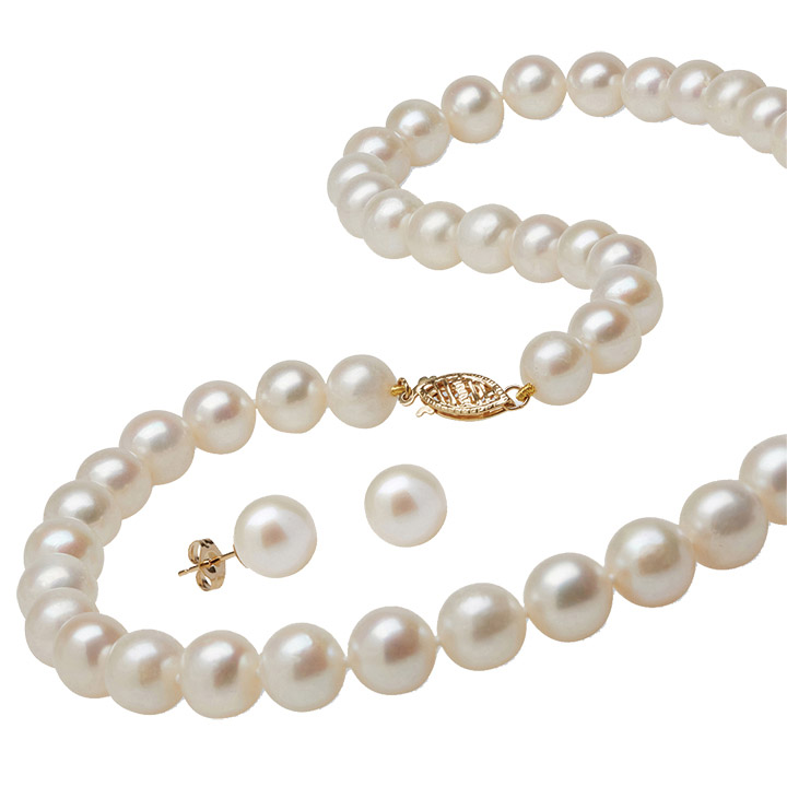 This lovely white freshwater pearl teardrop earring and necklace set is feminine and delicate. The necklace features an 11mm white freshwater teardrop pearl pendant on a sterling-silver 18” Singapore chain, while the lovely 8-9mm white freshwater teardrop pearl earrings are set in high-polished sterling silver with a shepherd’s hook for extra security.