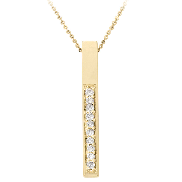A stunning vertical plunge of diamonds and 10K yellow gold. The 0.10twt round brilliant diamonds make this necklace shine on an 18" cable chain