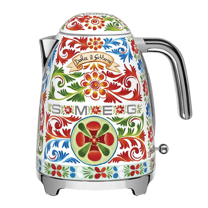 A 1.7L electric kettle ideal for easily preparing any kind of hot drink. With the gentle opening of the lid and the 360° swivel base it makes any time of day convenient and comfortable. With capacity enough for 7 cups its perfect for enjoying alone or with company. It features an automatic kettle shut-off when reaching 100°C / 212°F and decorative Sicilian art in partnership with Dolce and Gabbana.