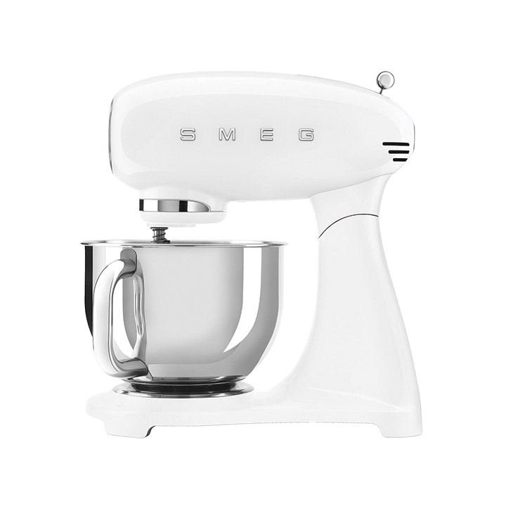 Performance and elegance describe this '50 style stand mixer design; a functional tool that gives refinement and style in the kitchen. Ten speed levels adapt to different dough consistencies, to ensure excellent results. Smooth start functionality enables perfect blending efficiency of ingredients and less spots. A powerful motor and planetary rotational motion guarantee a perfect mixing of the ingredients. It includes a wire whisk, flat beater, flex edges beater and dough hook.