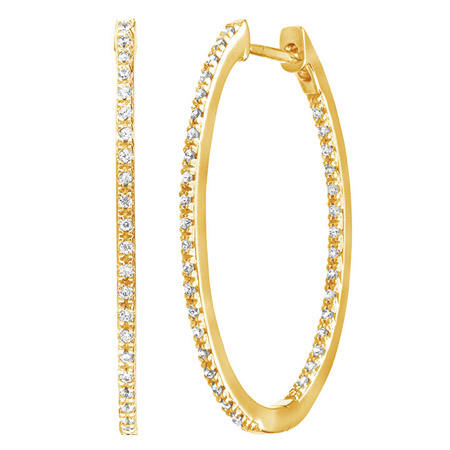 Round diamonds are set in lovely 10K yellow gold in these hoop earrings. They feature clear, shining 0.25 carat total weight diamonds.