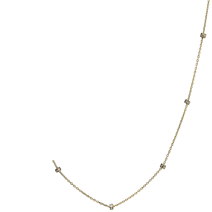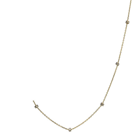 Add a pop of sparkle to your layering game: This pendant necklace features 0.10twt diamonds set in 14k yellow gold vermeil (a thick 2.5-micron coat of 14k yellow gold on top of a solid sterling-silver base) and measures 18” with jump rings at 18”, 20” and 22” and a lobster-claw clasp.