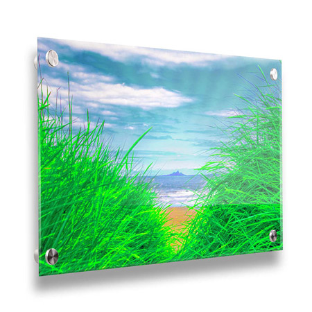 Hal Halli's photograph "Deco Beach" presents a strikingly vivid coastal landscape, where the artist's keen eye for color and composition transforms a simple scene into a captivating visual experience. Portrayed in bright neon greens and blues, this scene pushes the boundaries of what we expect from a natural setting, inviting the viewer to see it with fresh eyes. Bring a sense of calm and serenity into your home, office, or gallery space with this beautiful marine print, made in the USA. 12" x 16" Image size.