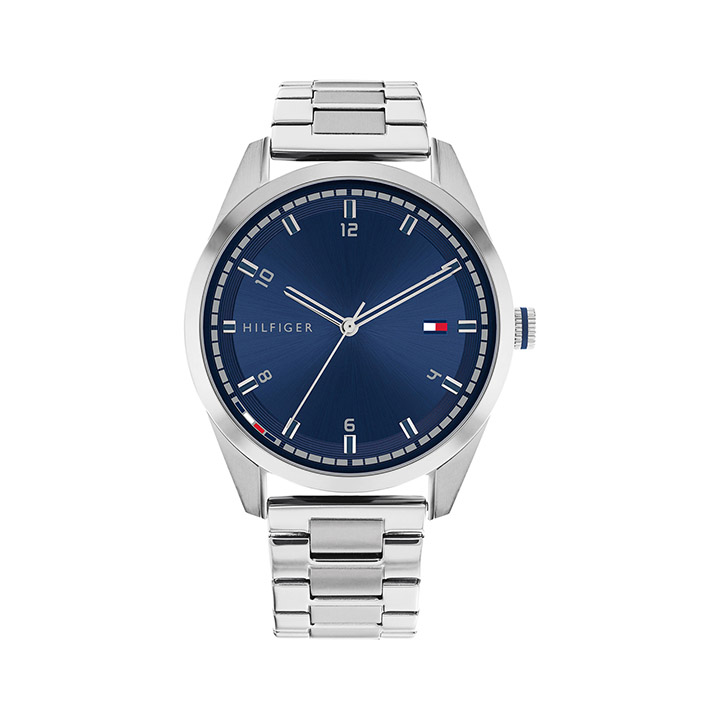 A modernized classic , this collection features 43mm cases in stainless-steel, gold plating, and blue IP. Water resistant up to 3 ATM.