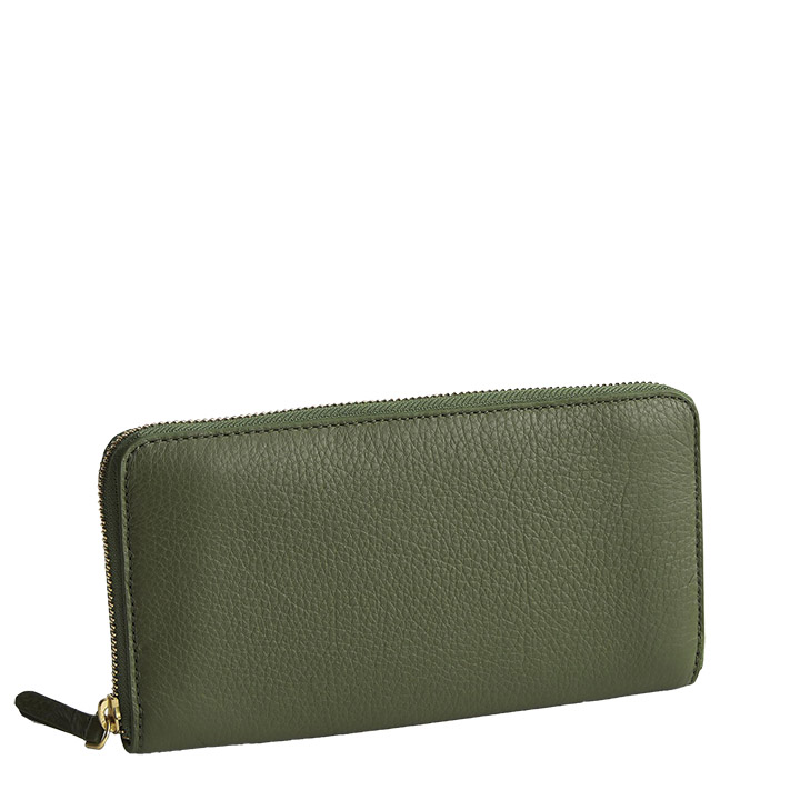 Made of leather sourced from premium American hides, the continental wallet in bronze-green leather from Vera Bradley is meticulously crafted, lightweight, and irresistibly soft for a relaxed, modern silhouette. It has an interior zip pocket, two slip pockets, tie and button closures, and an exterior slip pocket. Measures 13.25” x 13” x 5.25” with a 10.25” handle drop.