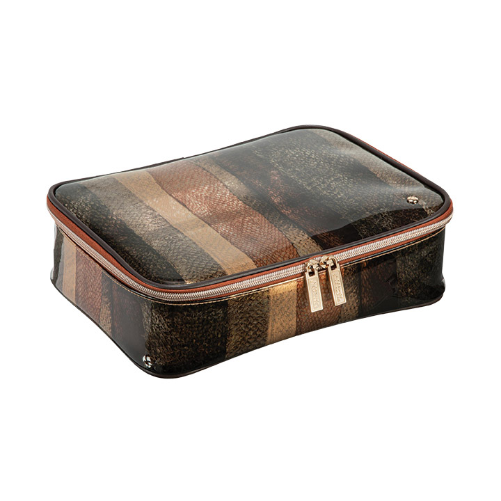 Inspired by the ultimate place to see and be seen, the Miami Claire jumbo toiletry case from Stephanie Johnson has a faux-leather trim and carry handle. This is the perfect bag to keep all your beauty goodies, whether it’s for everyday use or an extended trip. Stylish and water-resistant, its easy-to-clean design makes everything inside a cinch to find. Measures 3.25” x 11.25” x 8.25”.