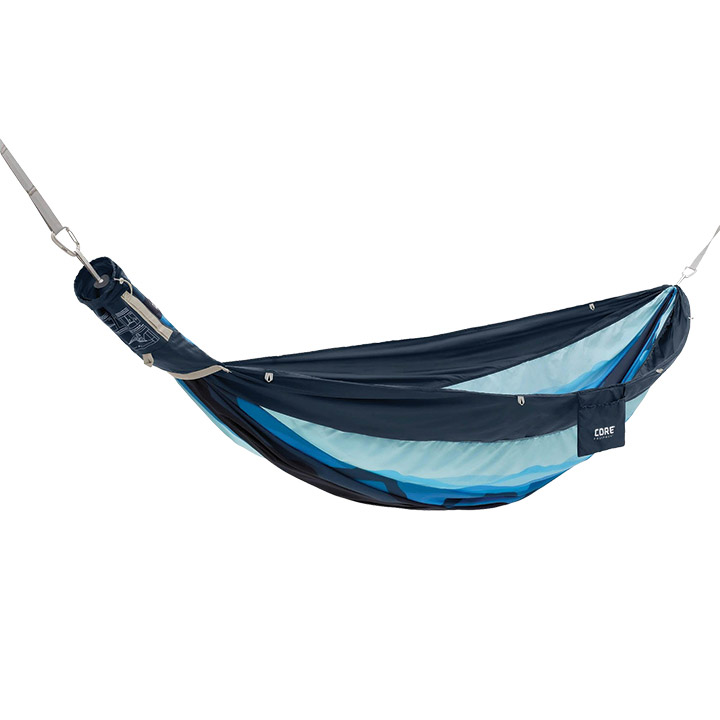 Relaxation is just two minutes away with this double hammock—no need to fumble with complicated setups. It has 14 webbing loops for attaching gear and a built-in side pocket, plus highly adjustable tree straps with 19 loops for precise height adjustments. Made with 300-thread 40D diamond ripstop nylon fabric, it supports two people up to 500-pounds total.