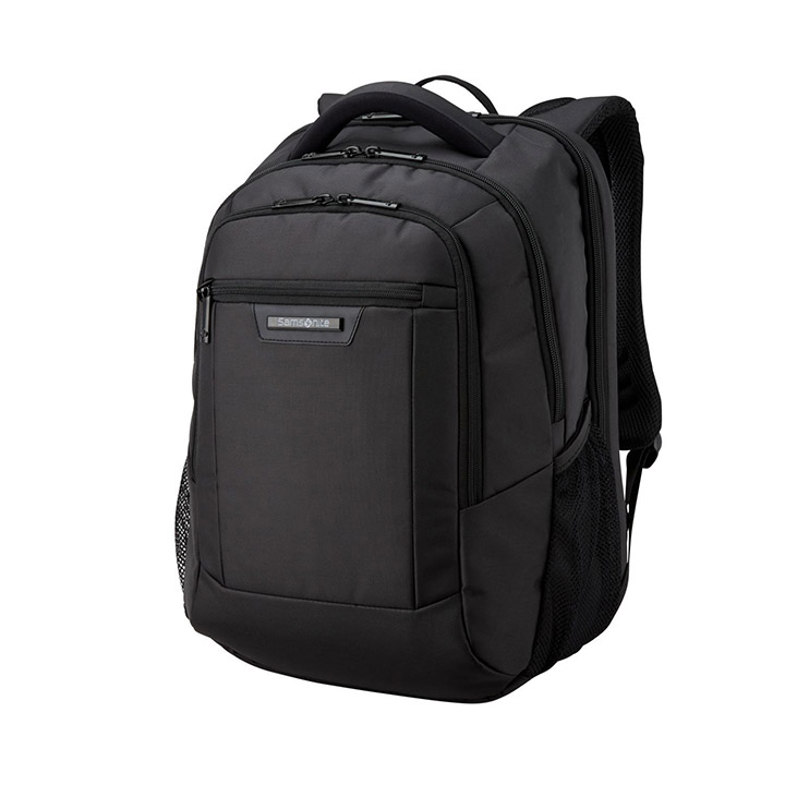 This classic standard backpack unzips to lay flat for fast and easy screening without removing the laptop. The bag features adjustable system provides a custom fit for most laptops 13" to 15.6" with a comfort neoprene accent on top carry handle, 2 front zippered pockets, 1 quick access pocket, 1 larger pocket with organization, mesh and slip storage pockets, side mesh pockets, contoured padded shoulder straps, fits over most upright handles, and iPad/Tablet storage . Large main compartment 17.75"x12.5"x9.25".
