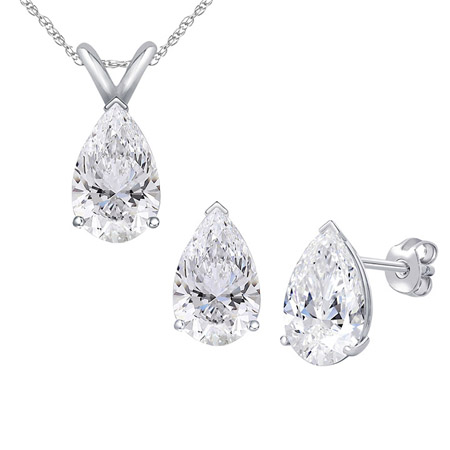 This earring and necklace set is made from lab grown diamonds cut in a lovely pear shape. The 0.35 carat stones are a simple, elegant accessory on their 10K white gold chain.