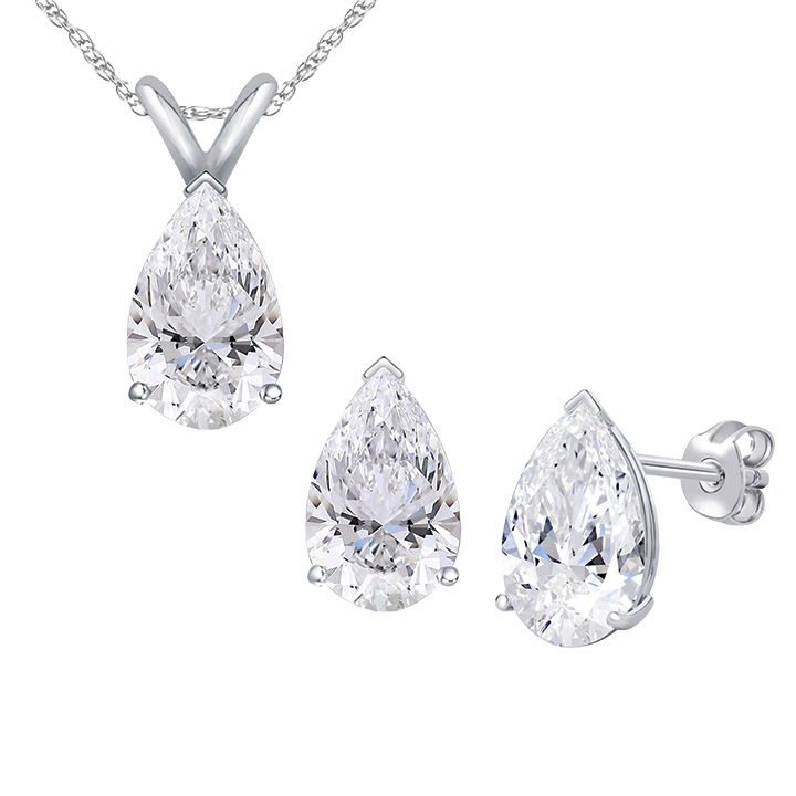PARIKHS PEAR SHAPE LAB GROWN DIAMOND PENDANT AND EARRINGS SET.