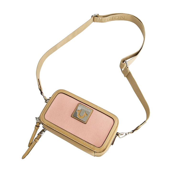 This True Religion horseshoe plaque crossbody camera bag is a compact and stylish accessory that blends elegance with practicality. The adjustable branded strap ensures a comfortable crossbody fit for hands-free convenience, and the zipper compartments make it perfect for storing daily essentials while keeping your look modern and polished. Measures 2.5” x 4.5” x 8”.