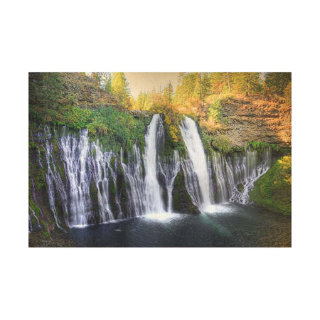 The vivid colors and movement of "Burney Falls" make it a perfect choice for lovers of landscapes and nature. The photograph captures the beauty of the waterfalls in MacArthur, Burney Falls Memorial State Park, California. Proudly made in the USA, the artwork is printed on 100% cotton canvas and stretched over 2” wide bars. Measures 12" x 18".