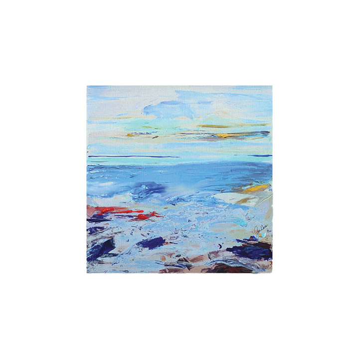 Experience the beauty of the coast with “Textured True Blue” by JD Studio, an abstract landscape painting that features thick layers of paint for texture and depth. The image is printed on cotton canvas and stretched over 2” wide bars, and the edges are printed with a mirror image of the artwork for a finished and clean look. Measures 10” x 10”.
