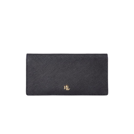 This slim wallet from Polo Ralph Lauren is crafted from crosshatch saffiano leather and features multiple pockets for ample storage. It’s finished with signature “LRL” metal hardware, faille lining, exterior zip pocket, 15 card slots, and four interior slip pockets. Measures 3.75” x 6.75” x .75”.