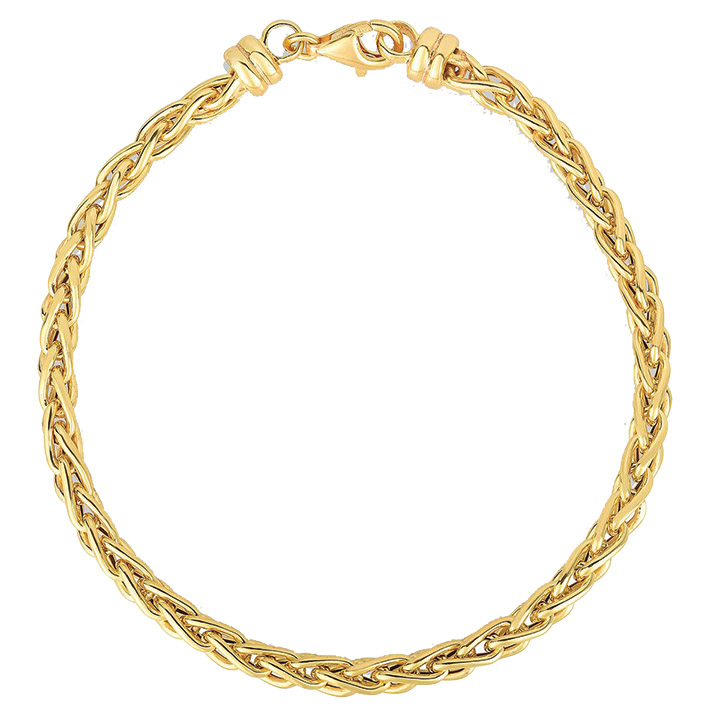 Four high-quality, gold-plated sterling-silver strands are woven together to create a stable wheat-chain bracelet that’s perfect when worn alone or layered with your favorite bracelets. It measures 7.5” long and 4mm wide and has a lobster-claw clasp.