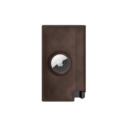 The Ekster AirTag wallet in classic brown is designed for fast access and slim storage, with a built-in aluminum cardholder that fans out your cards at the click of a button and protects them against skimming. Now it has a custom pocket for an AirTag so you can track it with the FindMy app. It holds 1-12 cards and bills, and blocks RFID to prevent wireless theft. Measures 0.4” x 4.1” x 2.5”.